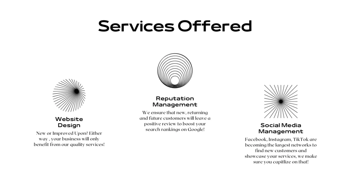 Our services offered correspond with the need to generate more leads and convert those leads into sales, that's why we prioritise Website Design, Reputation Management and Social Media Management.